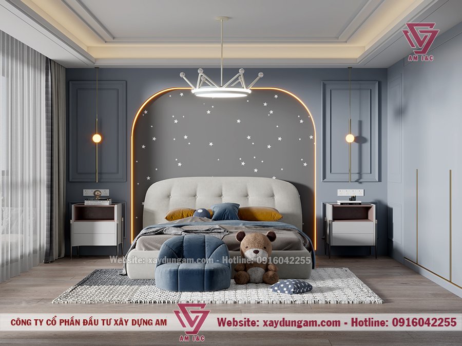 AM I&C xin giới thiệu tới các bạn các mẫu thiết kế phòng ngủ trẻ em đẹp dành cho các bé trai. Các mẫu thiết kế theo phong cách hiện đại, màu sắc dịu nhẹ, dễ đưa các bé vào giấc ngủ ngon.